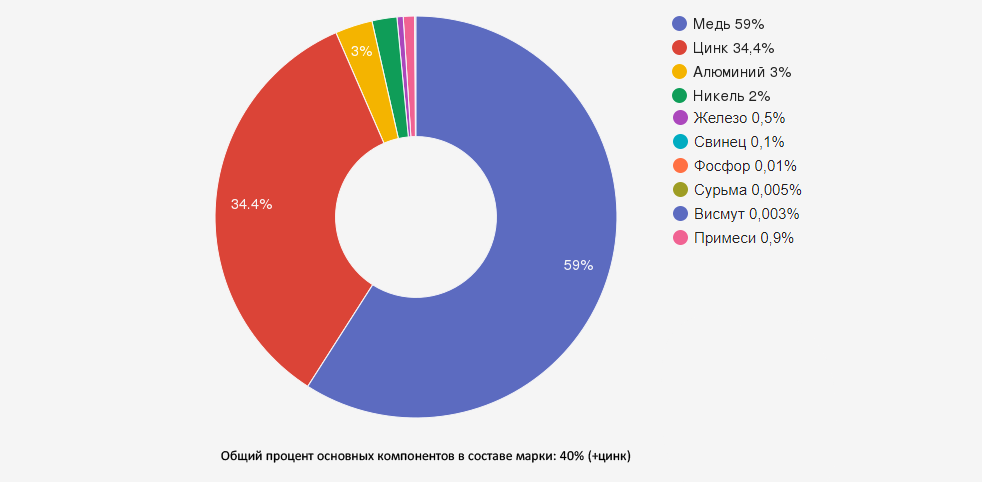 - 59 — указывает на среднее процентное содержание меди в сплаве (59%);